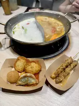 First, let's talk about the dual-flavor hot pot 🥘, chose Thai Golden Tom Yum and Lime Coconut Chicken Soup. The Tom Yum broth is sour, spicy, and appetizing, with a fragrant spice flavor and moderate spiciness. As for the Lime Coconut Chicken Soup, it’s sweeter and lighter, balancing out the spiciness of the Tom Yum, and perfect for cooking other ingredients.