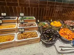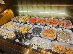 The self-service area has an overwhelming variety, including lots of chilled seafood; the cold shrimp is very fresh. The buffet level is Encore-worthy several times over. They even have pig's trotters with ginger, many appetizers and small dishes, and the sesame oil spinach is delicious. There are also other cooked dishes available for ordering. The must-try coconut chicken soup base looks like golden soup, very comforting and tasty to sip, with tender chicken.