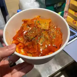 This dish has a very chewy texture. The rice cakes absorb the sauce’s flavor, making it fragrant, spicy, and delicious. The ingredients are also very rich, including vegetables and cheese, creating a layered taste. If you like Korean cuisine, you definitely shouldn’t miss this rice cake dish.