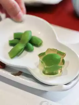 First, 5 appetizers are served: plum wine jelly, edamame, simmered wagyu, shredded daikon with clam meat, and crab chawanmushi😍 Each is uniquely crafted with care. Our favorites are the sweet and sour plum wine jelly and the smooth, fresh chawanmushi.