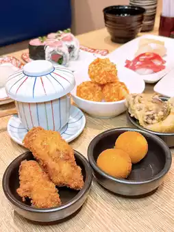 🔸Hot fried dishes are served piping hot, the fried oysters are big and crispy; the lava shrimp balls are bursting with sauce; the chawanmushi steamed egg is fragrant and smooth; the udon is served in a big bowl