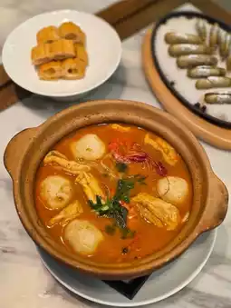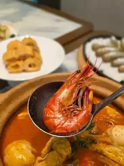 cooked into a rich seafood hotpot, mildly spicy, perfect with rice.