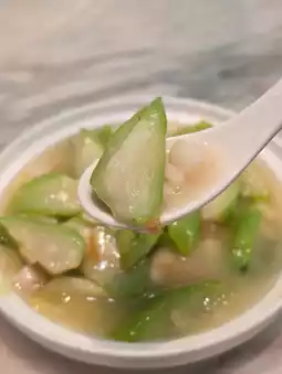 Fresh shellfish paired with loofah, very sweet and tender, the loofah is soft and easy to eat, with just a little seasoning—healthy and tasty.