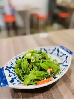 The water spinach is stir-fried just right, retaining a crisp texture. The seasoning is fresh and light.