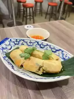 The spring rolls are crispy on the outside and tender inside, filled with a rich seafood filling. Served with sweet chili sauce, adding layers of flavor.