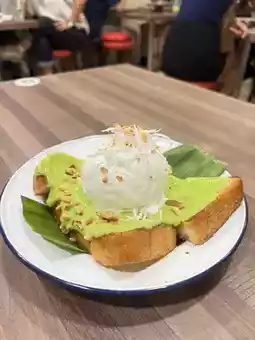 The coconut ice cream is smooth and delicious, paired with the unique flavor of pandan sauce. Sweet but not greasy, with toast that is crispy on the outside and soft inside.