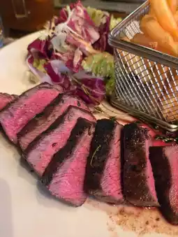 The US flat iron steak was beautifully seared, tender yet with a good bite. The steak was thick, with a slightly pink center, very juicy.