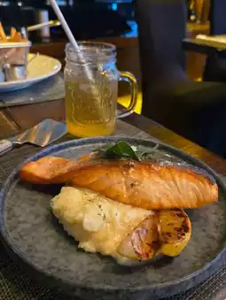 The salmon skin was pan-fried to a super crispy texture, the flesh was thick but not dry at all. It was tender and juicy😍 The mashed potatoes had a slightly chunky texture, paired with the creamy garlic sauce that was very fragrant and delicious😋