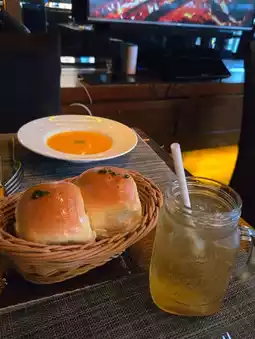 Dinner set menu $388, including soup, bread, salad, main course, and a drink, with an option to add dessert for $69😋 I ordered the US flat iron steak and Norwegian salmon with creamy garlic sauce, which was a delightful surprise.