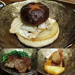 The restaurant specializes in premium wagyu dishes, and this time we tried their supreme wagyu set. This set includes three appetizers (taro tofu + simmered daikon and okra in broth + grilled abalone), three sashimi items (scallop + sea bream + toro), squid ink chawanmushi, wagyu tartare (the wagyu has an even color, topped with quail egg, sea urchin, caviar, and scallions, with diced pear at the bottom; combined with the wagyu in the middle layer, the texture is very rich 😻), sukiyaki (the meat is tender and juicy, and eating it with egg yolk really fills you with happiness 😎), truffle crab kamameshi (salmon roe can be added unlimitedly 🙈), maitake mushroom clear soup (light and refreshing, helps cut through the richness of the beef), and dessert (although the Mizuyoshin mochi is not my favorite, it looks really beautiful) 😍