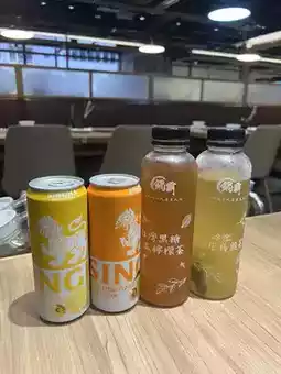 - Drinks Area: Offers cold brew teas including Osmanthus Oolong, Plum Hawthorn Tea, sodas, and a hot drinks counter with options like brown sugar ginger tea.