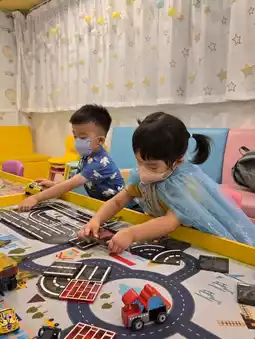 This time, there’s a new remote-controlled 4WD car sandpit, which Zheng Zheng loves to play with. But Zheng Zheng’s favorite is still the stage, where he can drum 🥁 and jam with his sister, super cool 😂. Yuet Yuet loves playing with kinetic sand the most and can play for a long time 🤭.
