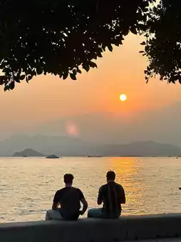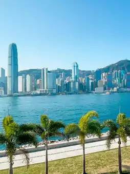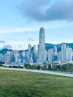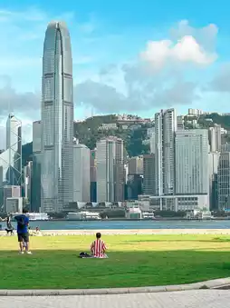 It offers a sea view facing Victoria Harbour, with cafes, coffee shops, and food trucks. You can also borrow a sun lounger for free to sit on the grass and relax. Staying here from noon until evening is no problem at all.