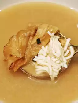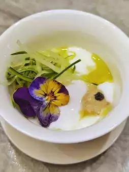 Chrysanthemum tofu with white miso soup🥣 was generously made👍. The chrysanthemum tofu⚪️ showcased the chef's knife skills🔪, the white miso was perfectly salty✅, combined with the fresh flavor of fish maw💫, truly top-notch🌟.
