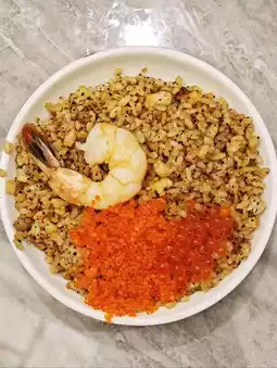 Black truffle seafood fried rice🍚 filled the air with black truffle aroma🍄 as soon as it was served. The rice grains were distinct✨, topped not only with a shrimp🦐 but also flying fish roe and salmon roe🔴, full of fresh flavor💯!