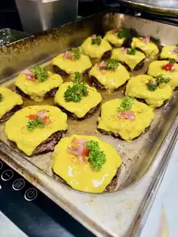 The freshly carved roast beef is tender and pink, even better with the gravy. The teppanyaki Saga Wagyu beef is tender with a fragrant fat aroma, enhanced by garlic slices and scallions for extra flavor. A must-try is the teppanyaki cheese hamburger steak—the cheese melts perfectly with the aroma of onions, the hamburger patty is very flavorful and juicy, highly recommended! There’s also foie gras toast, rich and oily, you have to have at least one piece~