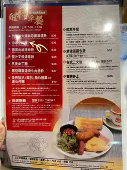 Yung's Tangerine Peel Roasted Goose with Rice: The roasted goose🍗 has crispy, juicy skin and tender meat that’s not dry. Dip it in the tangerine peel sauce to cut the grease and refresh your palate. The white rice is made from fragrant rice🍚, naturally aromatic, and the portion is very generous—enough to satisfy even men. Comes with a hot drink choice of coffee or tea, with an option to upgrade to iced drinks or others. I chose the classic Hong Kong-style milk tea☕, rich in tea aroma and creamy milk flavor, delicious even without sugar. 60 HKD.