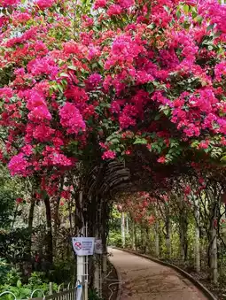 A 30-meter-long floral corridor within the Un Chau Estate (Exit C2 at Cheung Sha Wan MTR station), a public housing complex in Cheung Sha Wan, Kowloon, is adorned with bougainvillea spectabilis.