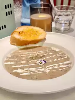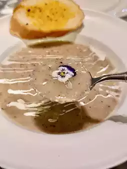 Not very creamy, but you can taste bits of mushroom meat, with a strong mushroom aroma.