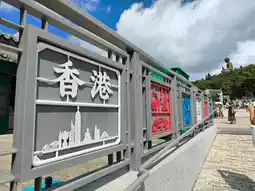 🛖 Ngong Ping Village is another must-visit spot when coming to Lantau Island, Hong Kong. We took the cable car for no more than half an hour. The village is designed in a traditional Chinese style, with a peaceful atmosphere and many shops, cafes, and souvenir stores to stroll around and enjoy. It's perfect for taking photos and relaxing before heading up to see the Big Buddha or continuing on the Ngong Ping cable car. As for us, we chose to sit and enjoy some cold ice cream to cool off for a while. It's a small village that's nice to explore.