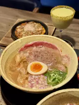 This Japanese restaurant located in Central is a sub-brand of "Tsukada Nojo" from Miyazaki Prefecture, Kyushu, specializing in ramen x izakaya with a unique character. The restaurant features a semi-open izakaya design, offering a comfortable environment with both indoor and outdoor seating options. The outdoor seats have a chill vibe, perfect for drinking and chatting with friends.