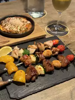 All three skewers are generously portioned and made with premium ingredients. The skewers are grilled just right and each comes with cucumber, shiitake mushrooms, cherry tomatoes, and yellow peppers to balance the richness.