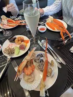 We upgraded to Prosecco to pair with the seafood. The seafood here includes crab legs, oysters, crayfish, scallops, and jade snails. Each is very fresh, especially the crab legs, which deserve praise for being large and meaty!