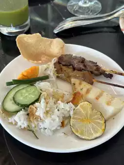 During this period, there is an Indonesian theme, so they offer Indonesian specialties like satay, rice, and prawn crackers, which taste good.