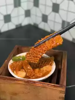 Wrapped in traditional rice roll skin, then covered with a crispy rice net, filled with shrimp paste, water chestnut pieces, corn, and crab roe. Like fried dough sticks, it offers a richer texture.