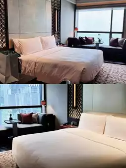Upon entering the room, you find the familiar Sheraton layout. Although the space in Hong Kong is smaller, it still feels quite spacious overall, with plenty of room for large suitcases. After making a call, staff promptly provide a bag. The sink and bathing facilities are ordinary, and the city view is somewhat limited. I recommend going out for a walk. The only downside is poor sound insulation.
