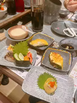 Sushi and Hand Rolls ๐ฃ The package includes ๐ฐ black truffle crab meat cheese soft-shell crab roll ๐ค sea urchin gunkan, foie gras cheese eel roll ๐ชฟ grilled Pacific saury sushi, seven-spice cheese garlic shrimp sushi ๐ง grilled king crab stick sushi. These selections are not only unique but also delicious ๐.