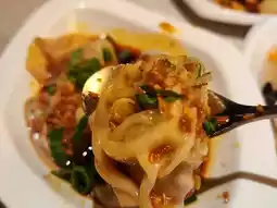 The wontons have thin skins and generous fillings, served with a fragrant and spicy red oil sauce. The sauce includes Sichuan pepper oil and chili oil, giving each bite a numbing and spicy flavor.