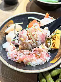 Custom Sashimi Donburi $69, chose chopped green onion tuna, butterflied red shrimp, salmon, and scallops. The donburi looks decent, all the sashimi is fresh, mixed with wasabi soy sauce and rice, very tasty!