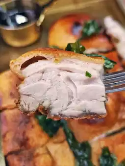 The Spanish roast suckling pig🐖 has a wonderfully crispy skin that cracks with a light tap of the knife🔪, making a satisfying “crack”✨. The fat layer beneath the skin has completely melted, and the meat🍖 is tender, flavorful, and infused with a hint of herbs🌿. It’s so delicious you’ll be licking your lips😍!