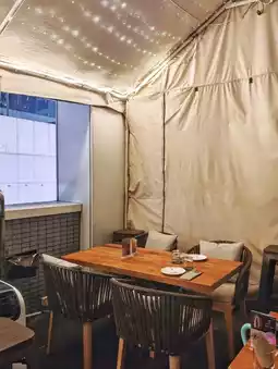 The interior decoration is quite stylish🥰, with a layout that gives off a cozy 🇪🇸 tavern vibe 🛋️. There’s also an outdoor dining area, and when it rains🌧️, they even set up a canopy⛺️.
