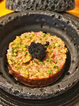 The beef tartare🥩 with black caviar is incredible! The beef is finely chopped🔪 and perfectly seasoned, not overpowering the fresh sweetness of the beef😋. The texture is tender and smooth, and the highlight✨ is the generous spoonful of black caviar🖤 on top. The salty freshness perfectly complements the rich beef tartare💥, creating an explosion of layers💡!