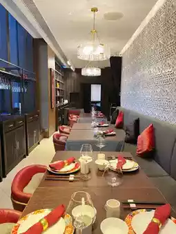 The restaurant offers a spacious and comfortable environment, decorated in an elegant Chinese style with high ceilings that create a particularly tranquil atmosphere.