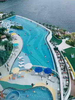 The hotel’s swimming pool features multiple water play facilities🏊🏻♀️ suitable for children of all ages, letting them play freely in the water and burn off extra energy🩵 The infinity pool is large and great for photos📸 It’s busier on weekends but still maintains a sense of space. Combined with blue skies and white clouds, it’s truly unbeatable🌤️