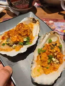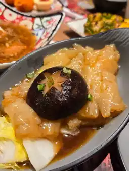 As for cooked dishes, there are quite a few options: skewers, tempura, fried items, grilled oysters, lamb racks, stewed soup, plus drunken abalone in Huadiao wine and thick abalone sauce braised fish maw. Unexpectedly, they even have sauerkraut fish 😂 Zheng Zheng and Yue Yue really love the sweet potatoes and grilled pineapple 🍍 The pineapple is sweet and juicy, the two of them ate over ten pieces together 🤣