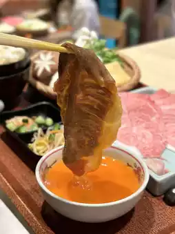 “Sukiyaki Kansai” focuses on Kansai-style sukiyaki, and they have opened a branch in Tsim Sha Tsui. As soon as you enter the store, you’ll see a giant Wagyu model, very impressive! The staff arranged a counter seat for me, with a pot for each person to cook their own sukiyaki. The menu offers several different cuts of Wagyu beef for grilling. This time, I ordered two types of meat to try!
