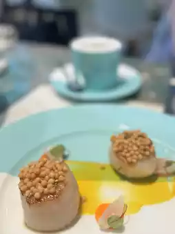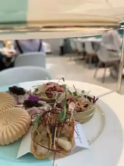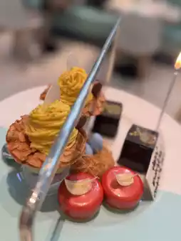 The moment I stepped in, I screamed "Wow!" everywhere was filled with Tiffany’s classic blue—walls, seats, decorations, even the tableware all in this dreamy shade. Paired with crystal chandeliers and exquisite floral arrangements, every detail screams "Come take photos"📸! The craziest part is that all the silverware and tableware are Tiffany limited editions!! The bone china teacups are printed with the Tiffany logo, the silver teaspoons sparkle, and even the small plates for sugar packets exude luxury. Holding them instantly makes you feel super classy! The space inside is spacious and comfortable; sitting by the floor-to-ceiling window, overlooking the bustling streets of Tsim Sha Tsui while enjoying afternoon tea with limited edition tableware—this is just too chill~