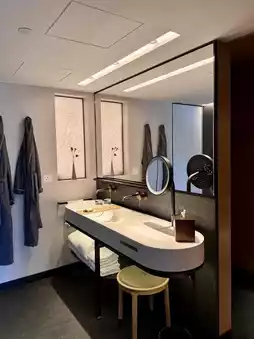 The room? Quiet luxury. Not loud about it. Everything exactly where you’d hope it would be. Switches that make sense. Bedding that’s clean in a way that feels private, not sterile. Even the light from the bathroom didn’t burn your eyes when you turned it on at 3am. That kind of thoughtfulness 😆