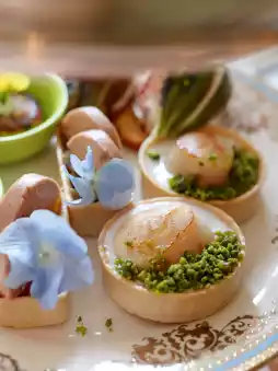 4. Hokkaido Scallops with Crushed Pistachios and Coconut Cream: Fresh scallops, creamy coconut cream, and crushed pistachios add texture.