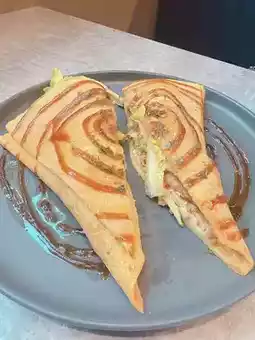 Since the set includes a savory crepe, we ordered this. The crepe skin is chewy and elastic, filled with slightly spicy chicken, salad greens, diced tomatoes, avocado sauce, corn, and rich cheese. The seasoning is well balanced and quite a pleasant surprise.
