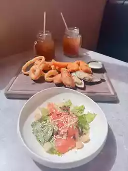 There are 6 types of unlimited appetizers to choose from: garlic baked mussels, crispy squid rings, mini Caesar salad with smoked salmon, honey chicken wings, deep-fried shrimp, and crispy onion rings. All are very tempting 🤩. We ordered all of them and enjoyed them so much we ordered seconds 🤭.