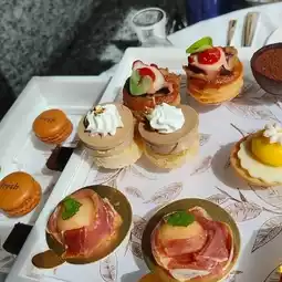 At the Italian restaurant Cucina inside the Marco Polo Hotel in Tsim Sha Tsui, in collaboration with the skincare brand fresh, a black tea-themed skin-refreshing afternoon tea is launched from May to mid-July. A series of exquisite savory and sweet snacks have been designed around black tea. The savory items are especially outstanding, including Sicilian octopus with black tea mashed potato and tomato, foie gras with black tea milk jelly accompanied by gold leaf, Parma ham with melon, Italian-style toasted bread with ricotta cheese and truffle honey, and a half tomato lamb pie. Each dish is a feast for the eyes and palate. Enjoy afternoon tea while gazing at the stunning Victoria Harbour view, and you can also take home a fresh sample pack.
