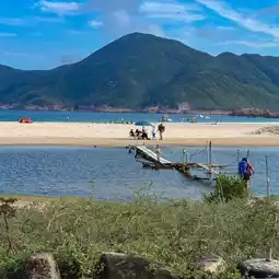 Ham Tin Wan is a secluded slice of heaven tucked within Sai Kung’s rugged coastline. After a scenic hike past Sai Wan Beach, I arrived at this pristine stretch of sand framed by lush hills and turquoise waters. The vibe was peaceful, with just a few campers and surfers dotting the shore. Crossing the quirky wooden plank bridge added a touch of adventure, and the local eateries served up refreshing treats like tofu pudding and red bean slushies. Whether you hike in or take a speedboat, Ham Tin Wan rewards you with raw beauty, serenity, and a true escape from city life.