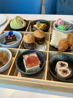 The afternoon tea set is for two people, with a balanced and exquisite mix of savory and sweet treats.