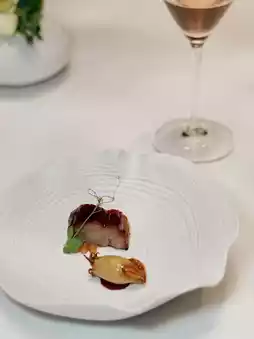The dessert is paired with 1980 vintage Maury sweet wine,