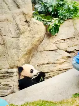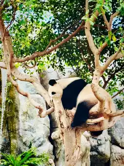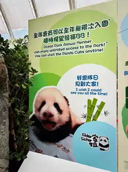 When visiting Hong Kong Ocean Park, besides taking the cable car to enjoy the scenic views and challenging thrilling rides, the most anticipated experience is visiting the giant panda Ying Ying and her twin babies—big sister and little brother. At the time of the visit, Ying Ying and the twins were not yet living together; big sister was sleeping in a tree, while little brother was playing with the nanny, both adorable and charmingly clumsy.